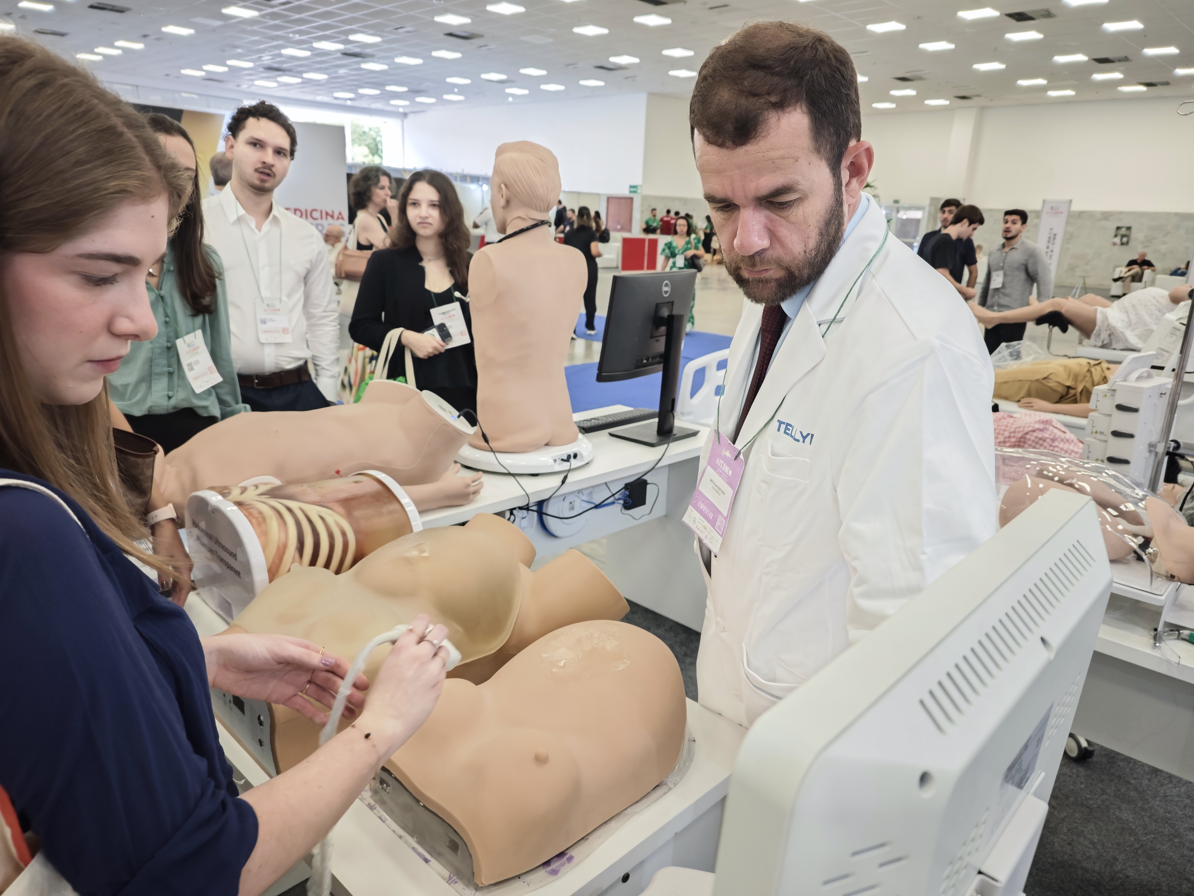 Tellyes and its Brazilian strategic partner made a grand appearance and exhibited several new star products at booth 11, including NUWA-Birthing Simulator, MULAN-Multifunction Patient Simulator, Laparotomy & Thoracotomy Damage Control Simulator, Lower GI Endoscopy Training Model (with Pathology Modules), Adult Thoracentesis Simulator and many training models.