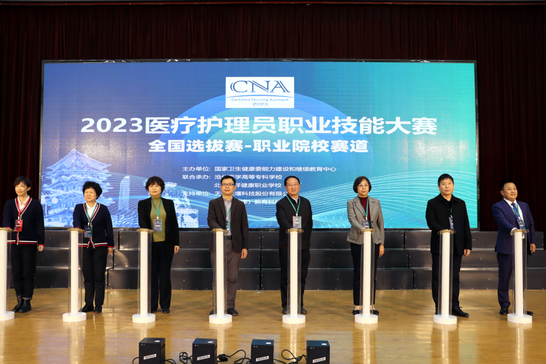 2023年12月1日,由国家卫生健康委能力建设和继续教育中心主办,沧州医学高等专科学校、北京百洋健康职业学校联合承办,乐天使、慧医(天津)教育科技有限公司等单位协办的首届医疗护理员职业技能大赛(职业院校赛道)全国选拔赛开幕式在沧州医学高等专科学校隆重举行。